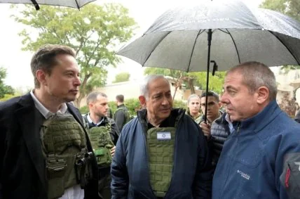 Вместе с Биньямином Нетаньяху Илон Маск посетил кибуц Кфар-Аза, пострадавший от нападения ХАМАСа 7 октября.