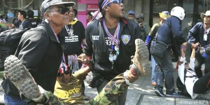 Устройство небольшой мощности взорвалось сегодня на улице Бантад Тонг, по которой шли антиправительственные манифестанты. Взрыв прогремел примерно в двухстах метрах от их лидера Сутепа Таугсубана, возглавлявшего шествие, сообщают очевидцы. Оппозиционный политик не пострадал. По словам участников демонстрации, взрывное устройство было брошено в толпу со стороны трехэтажного здания, мимо которого шли демонстранты. Часть очевидцев свидетельствует, что взрывное устройство бросили из проезжавшего мимо автомобиля.