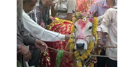 В городе Индаур (Индия) состоялась церемония бракосочетания быка и коровы.