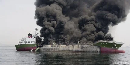 Вслед за взрывом на танкере, который, по всей видимости, был загружен нефтью, разгорелся сильный пожар, говорится в сообщении.