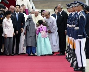 Папа римский Франциск прибыл в Республику Корея, сообщают местные СМИ в четверг.