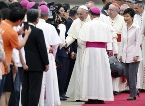"Президент Пак Кын Хе поприветствовала папу Франциска по прибытии в аэропорт Сеула, откуда он направился в президентскую резиденцию Чхонвадэ на официальную церемонию приветствия", - пишут издания. Пятидневный визит в Южную Корею - это первое посещение Азии нынешним папой со времени его вступления в сан в марте 2013 года, а также первый визит понтифика в Сеул за последние 25 лет, подчеркивают газеты.