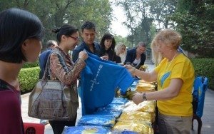 В мероприятии приняли участие около 300 человек из более 10 стран мира, в том числе много китайцев. Все они создали флаг Украины, переодевшись в желтые и голубые футболки. Оригинальный рисунок для футболок создала инициатор и идейный руководитель проекта, известный украинский дизайнер Анжела Лисица.