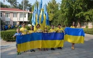 Флешмоб "Flag for Ukraine" ("Флаг для Украины") состоялся в субботу в Пекине на территории Посольства Украины в КНР.