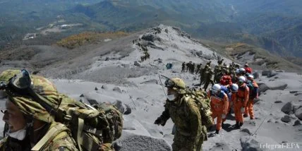 Японские спасатели продолжают поисковые работы у вулкана Онтаке.