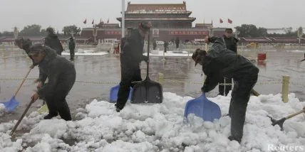 Пекин и северные провинции Китая оказались в выходные во власти холодного циклона, принесшего с собой первый в столице снег.