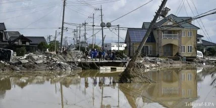 Разлив реки Кинугава в японском городе Дзесо уже нанес ущерб не менее 22 тыс. человек, чьи дома оказались частично или полностью затоплены водой.Ухудшению ситуации способствовали сильные ливни, которые пришли в регион после отступления тайфуна "Этау". По данным метеорологов, за последние трое суток в регионе выпало 600-700 мм осадков. Проливные дожди сопровождаются сильным ветром. В среду из-за непогоды в Японии были отменены десятки авиарейсов, власти рекомендовали более 500 тысячам человек покинуть свои дома.