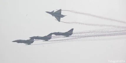 Речь генерал-майора предшествовала показательному выступлению пилотажной группы китайских военно-воздушных сил "Ба И" ("8 августа") в составе 8 истребителей J-10, которые показали зрителям, наряду с традиционными, 5 новых фигур высшего пилотажа.