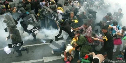 Как сообщили иностранные СМИ, в столице Таиланда милиция пыталась остановить протестующих, в частности, отделяя их от правительственных учреждений и здания ООН в Бангкоке.