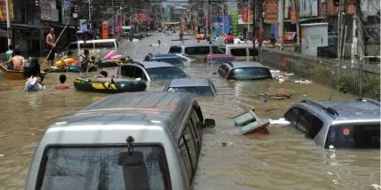 В Китае в городе Сиань из-за возросшего количества осадков объявлено "красное" штормовое предупреждение.