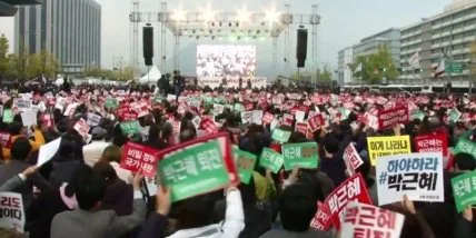 Тысячи протестующих в Сеуле вышли на демонстрацию с требованием отставки президента страны  на фоне скандала с вмешательством в государственные дела близкой подруги корейского лидера.