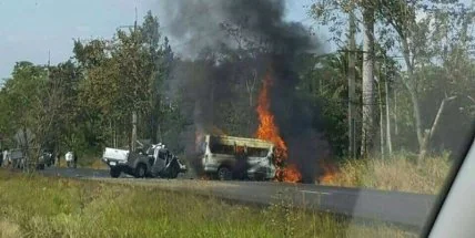 В Таиланде в районе Банбинг в провинции Чонбури произошла серьезная авария. По предварительной информации, фургон врезался в пикап и загорелся. Сообщается, что в результате ДТП погибли не менее 25 человек, включительно 2 детей.