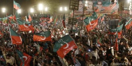Демонстрацию провели сторонники партии "Техрик-э-Инсаф", лидером которой является бывшая звезда крикета Имран Хан.