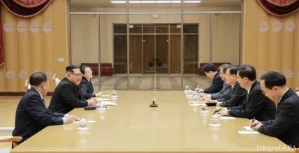 Ким Чен Ын и делегация Южной Кореи обменялись на встрече в Пхеньяне мнениями по вопросам поиска путей ослабления военной напряженности на Корейском полуострове и активизации разностороннего диалога и сотрудничества, передает Ренхап.