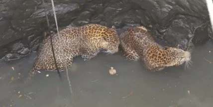 В Индии спасли двух леопардов, которые свалились в колодец (Видео)
