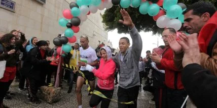 Спортсмены бежали вокруг Вифлеема, через лагеря палестинских беженцев и вблизи израильского заградительного барьера.