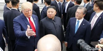 Ким Чен Ын и Трамп встретились в демилитаризованной зоне (Фото, Видео)Встреча двух лидеров продлилась около часа, что значительно больше, чем предполагалось.