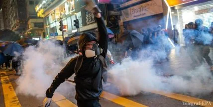 В ходе столкновений вечером 24 декабря в Гонконге полиция применила на демонстрантах слезоточивый газ.