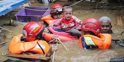 Отмечается, что целые районы Джакарты и окрестностей затопило после сильного дождя 31 декабря и в первые часы Нового года.