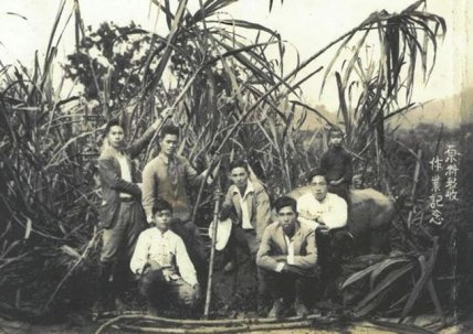 Титэцу Ватанабэ (в центре) на ферме по производству сахарного тростника