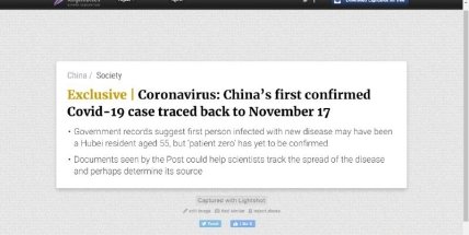 Как писала газета South China Morning Post (SCMP) в марте этого года, "нулевой пациент" с COVID-19 был, вероятно, зафиксирован 17 ноября 2019 года в городе Ухань (китайская провинция Хубэй). Им, как считается, был 55-летний мужчина.