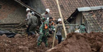 В Индонезии произошел двойной оползень. Погибли не менее 12 человек.
