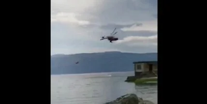 Совершавший забор воды из озера вертолет потерял управление и рухнул в воду на юго-западе Китая.