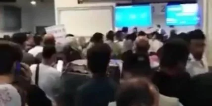 "После того, как по залу вылетов разнесся слух, что для чиновников и политиков, приехавших в аэропорт, тайно печатают посадочные талоны, в нем начался хаос.