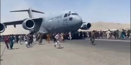 Граждане Афганистана, в попытке сбежать со страны после того, как представители "Талибана" захватили там власть, цеплялись за шасси и фюзеляж американских военных самолётов, покидающих опасные территории. Вследствие этого погибли трое афганцев, сорвавшихся с большой высоты.