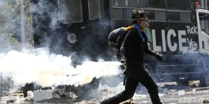 Над площадью Монумента демократии, где также находятся протестующие, сегодня с утра кружит вертолет, призывая манифестантов расходиться по домам.