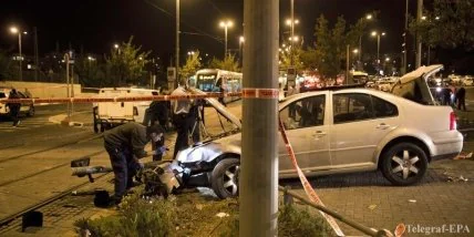 Радиостанция "Решет Бет" сообщает, что после наезда на людей автомобиль врезался в столб. Водитель выскочил из машины и попытался сбежать с места происшествия, которое расценивают как теракт. Полицейский, ставший свидетелем наезда, обезвредил злоумышленника.