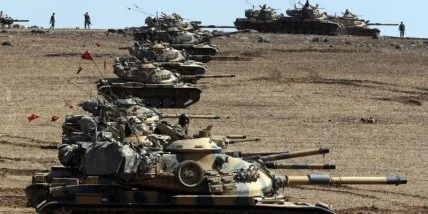 Турецкие танки вышли на границу с Сирией для проведения спецоперации.