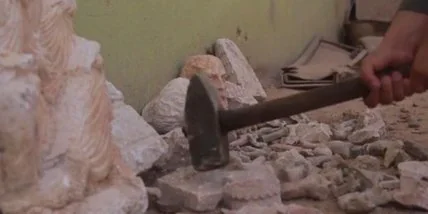 Сделанные вандалами видеокадры появились на сайтах, поддерживающих боевиков. На видео античные скульптуры и барельефы дробят кувалдой на мелкие части.