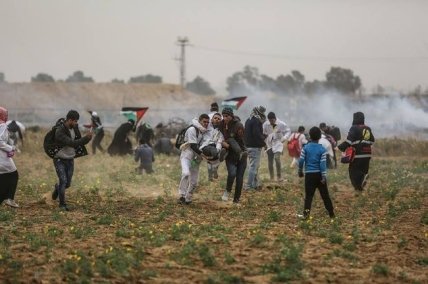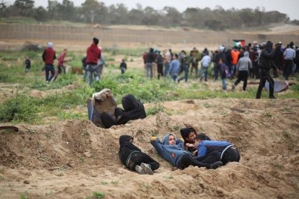 “Тысячи палестинцев собрались на границе сектора Газа с Израилем в субботу, чтобы отметить первую годовщину возникновения протестов, столкнувшись с израильскими войсками, развернутыми вдоль границы”, - говорится в сообщении.