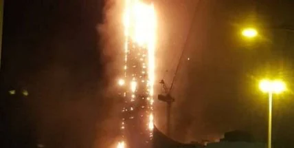 Повреждено большое количество автомобилей: В ОАЭ пылает небоскреб (Видео)