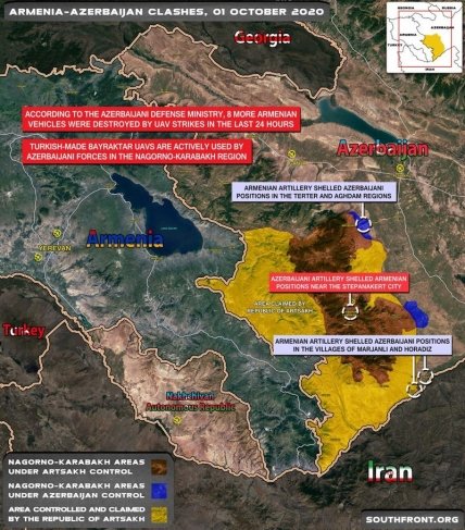 Война за Нагорный Карабах: появилась карта боев 1 октября