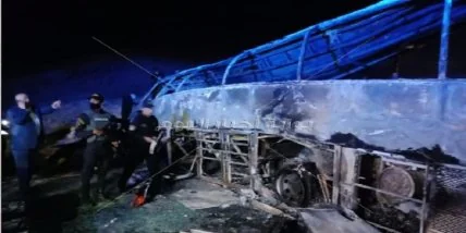 Следовавший из Каира в Сохаг пассажирский автобус врезался в грузовик с нефтепродуктами, от чего оба загорелись.
