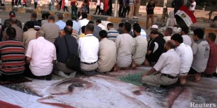 После ночи молитв и политических речей на рассвете демонстранты начали выкрикивать лозунги, протестуя против угроз их разогнать.