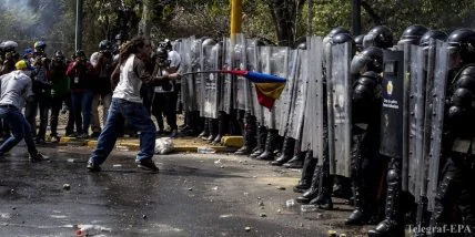 Вчера, 22 марта, уличные протесты в Венесуэле в течение последнего месяца нанесли ущерб в размере 10 млрд долларов. "Меньшинство, которое хочет осуществить переворот, наделало столько вреда. Протестующие сожгли университет, где учились сотни студентов", - сказал Мадуро, имея в виду военное училище на западе Венесуэлы, которое подожгли демонстранты.