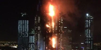 В дубайском отеле Address Hotel Downtown вспыхнул пожар. О причине пожара, охватившего небоскреб почти целиком, пока ничего не известно. Данное место является традиционным для массовой встречи Нового года в ОАЭ.