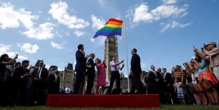 Глава правительства Канады Джастин Трюдо поднял флаг ЛГБТ движения на поляне перед парламентом Канады.
