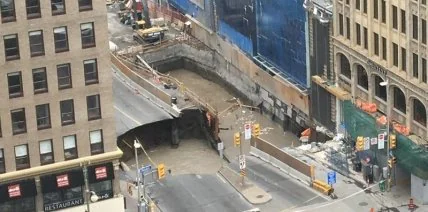 В центре столице Канады под землю ушли 4 полосы проезжей части, что спровоцировало утечку газа и эвакуацию окрестных домов.