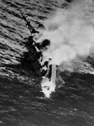 Речь идет о трех военных кораблях: тяжелом крейсере "Эксетер", эсминцах "Энкаунтер" и "Электра", потопленных японцами у берегов Индонезии в 1942 году.