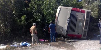 На востоке Мексики автобус с туристами перевернулся на шоссе, по меньшей мере 12 человек погибли.