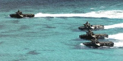 30-тонные гусеничные амфибии во время учений в Индонезии сбросили в океан.