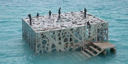 На одном из курортов Мальдивских островов появилась необычная инсталляция - полузатопленная галерея со скульптурами, которые будут постоянно меняться.