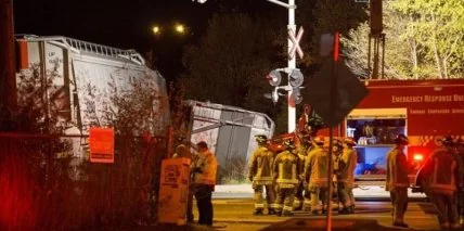 Поезд с промышленными химикатами и крупами сошел с рельсов в восточном районе Торонто.