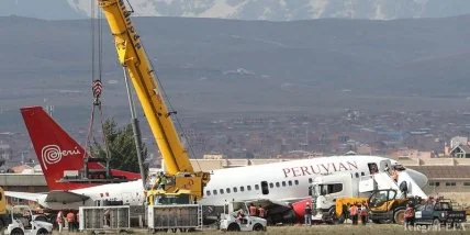 В боливийском аэропорту Эль Альто у пассажирского Боинга 737 во время посадки отвалилось шасси, самолет перевернулся на бок, но никто не пострадал.