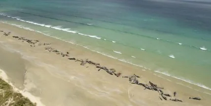 Сотни черных дельфинов выбросились на пляж на острове Стюарт, третьем по величине острове Новой Зеландии.