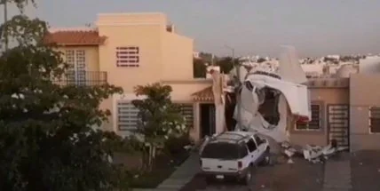 В Мексике небольшой самолет упал на жилой дом, весь экипаж погиб